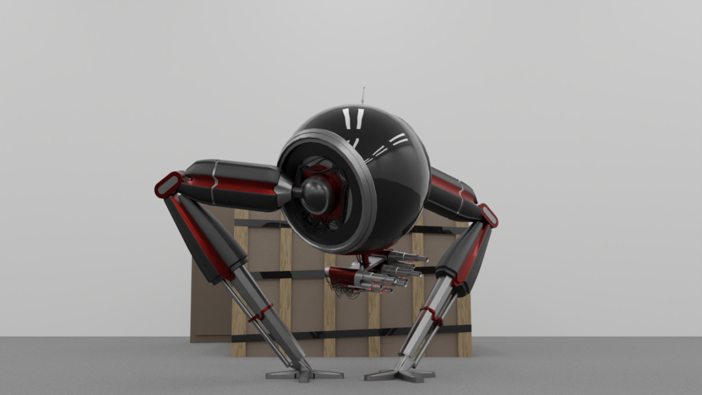 This project was made to experiment with mechanical joints and movements of characters. Movements that are not hunanoid. So this robot walks with the motions of a normal hinge and a ball joint.